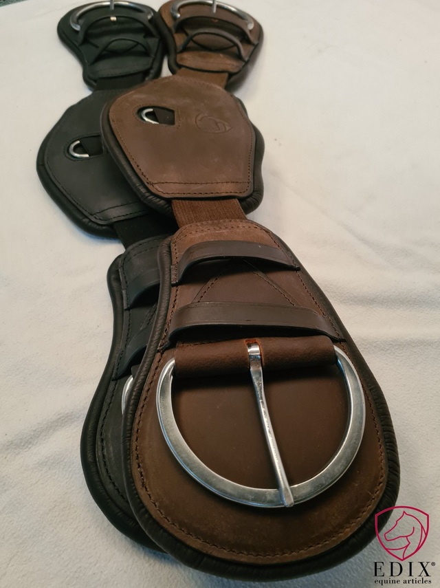 De EDIX elastische lederen Western singel in halvemaan vorm is ideaal voor paarden waarbij de singel de neiging heeft naar voren te schuiven en of voor paarden met een bolle buik.