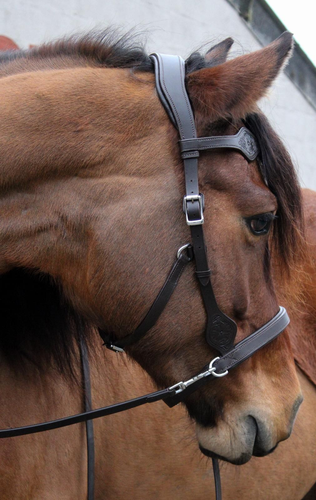 De FRA Dandy is een Side Pull hoofdstel uit systeem 3 van Freedom Riding Articles Bitloos balk. Dit bitloze hoofdstel heeft een sierlijk vormgegeven frontriem en bakstukken. De neusriem is vlak met en zacht onderlegd. Het anatomisch vormgegeven kopstuk is onderlegd met een zachte padding. Het hoofdstel is verstelbaar aan de bakstukken, kaakriem en neusriem. Het hoofdstel is inclusief volleder teugels met clipjes.