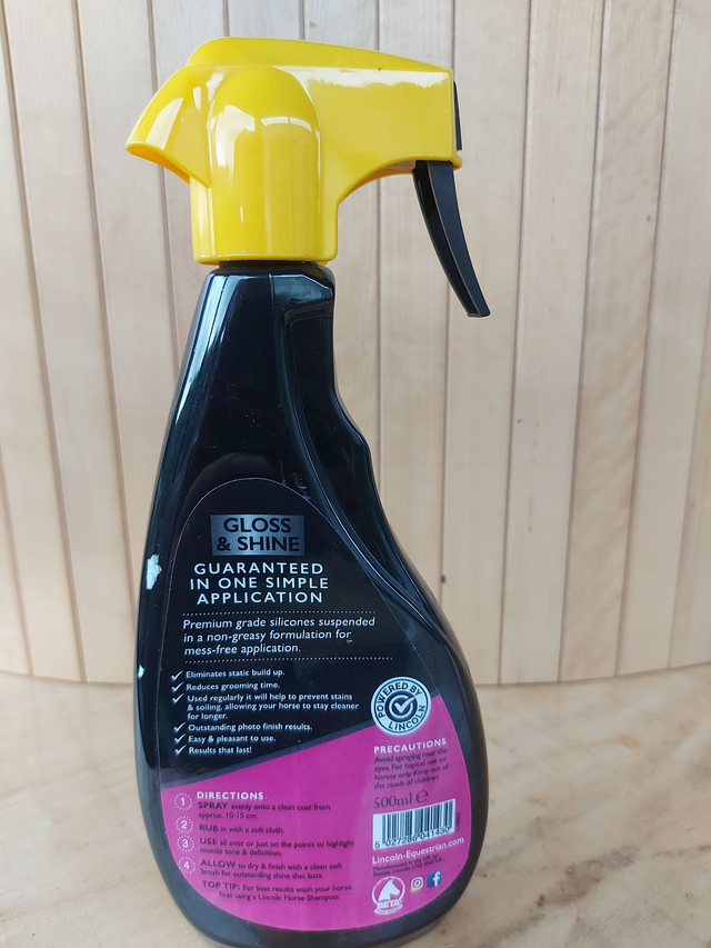 Dit product is niet vet en voorkomt het klitten van manen en staart, is stofafstotend en voorkomt vlekken.